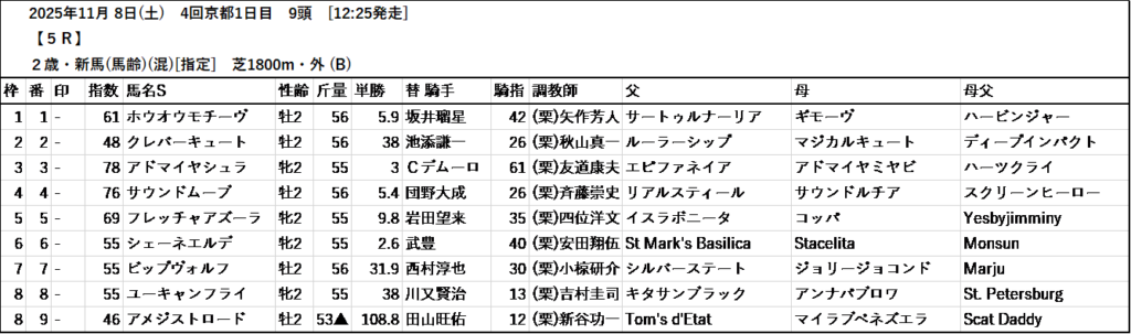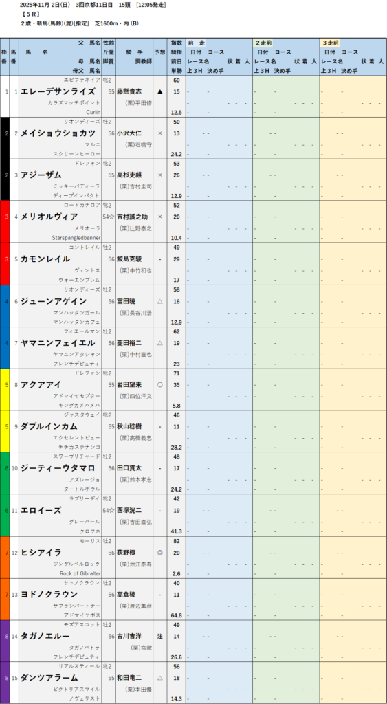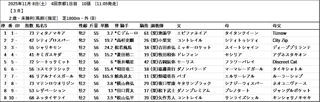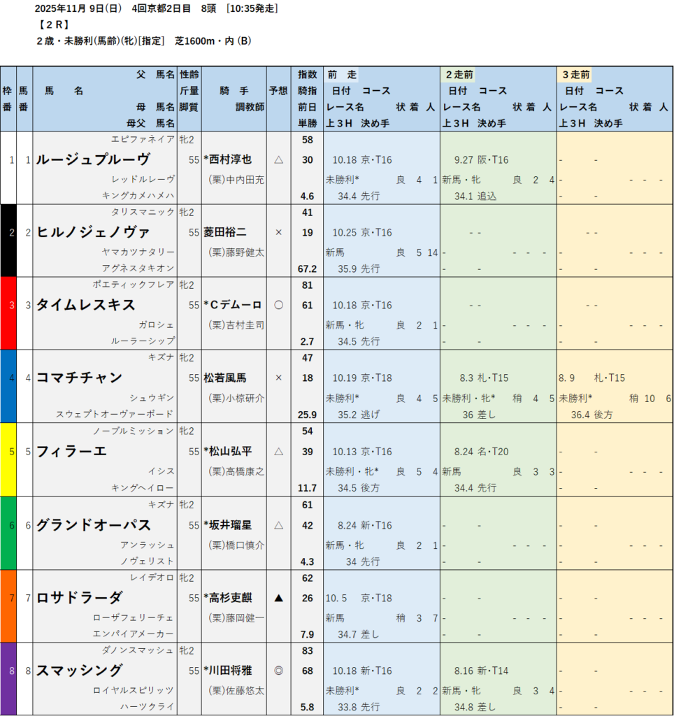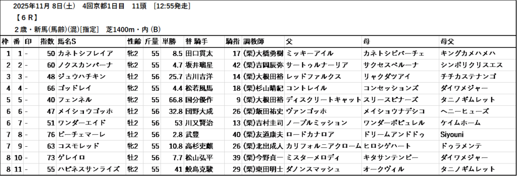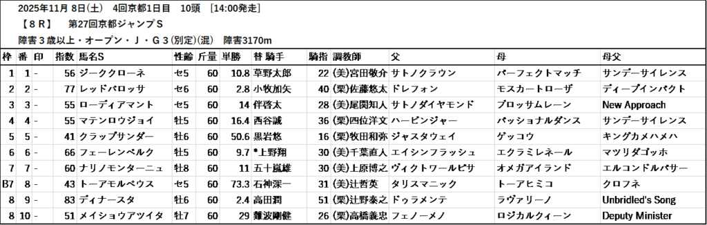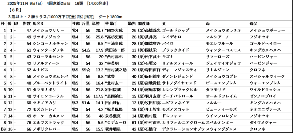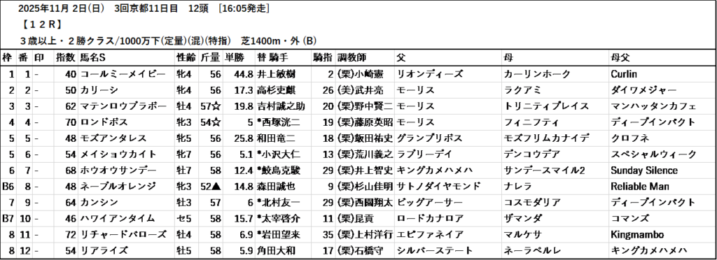 テッパン馬には届かないものの指数の高いレースも予想しています。