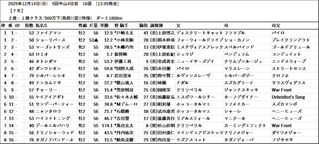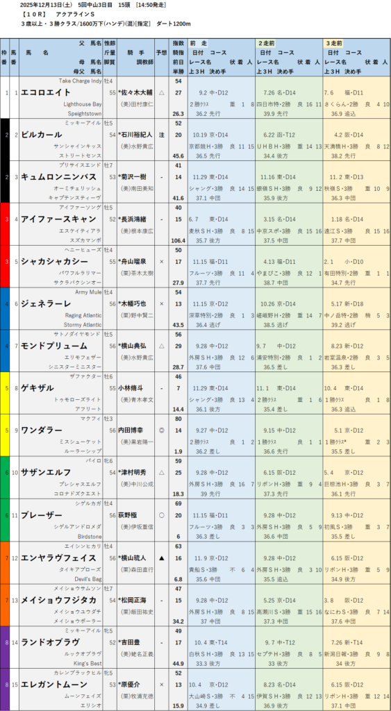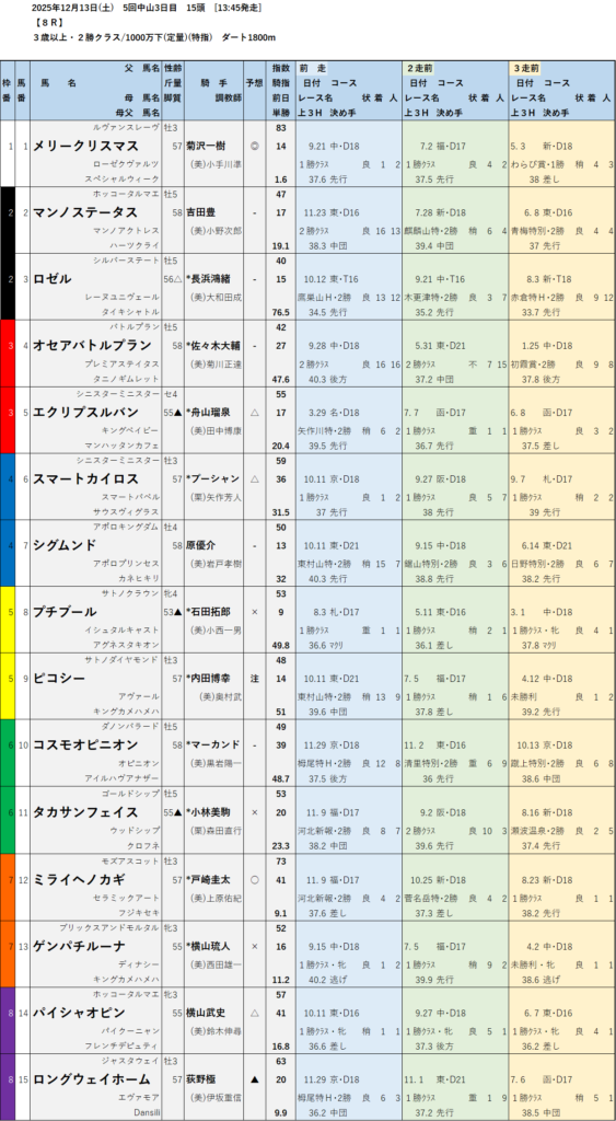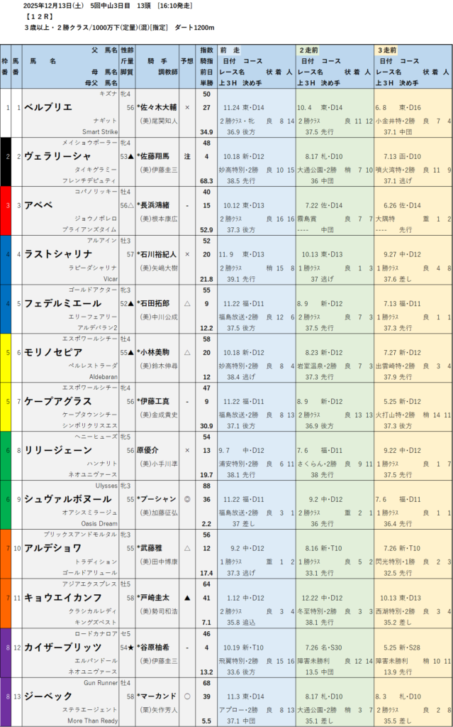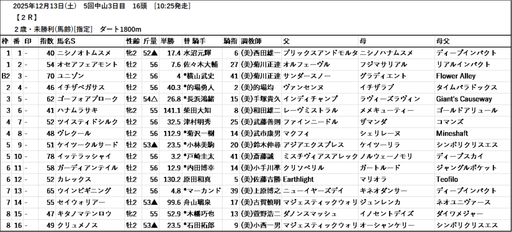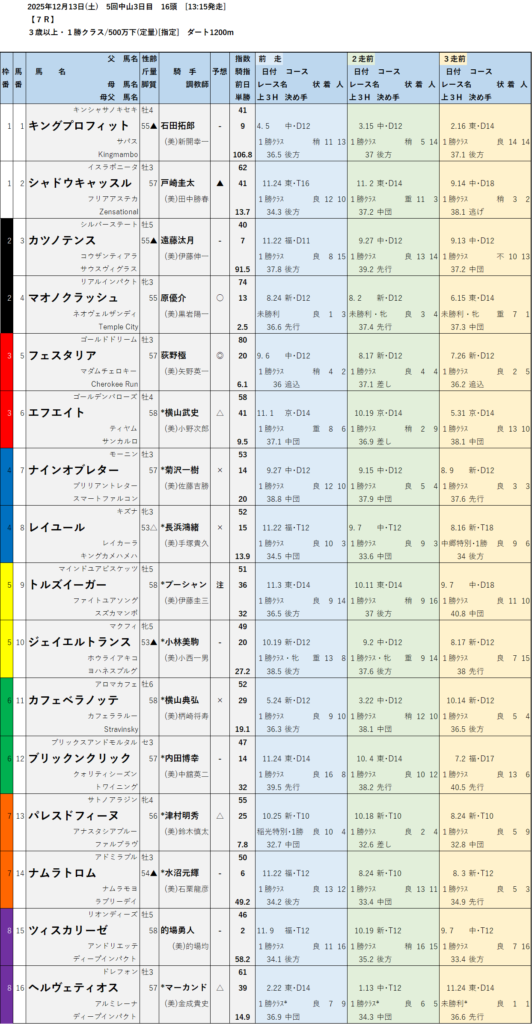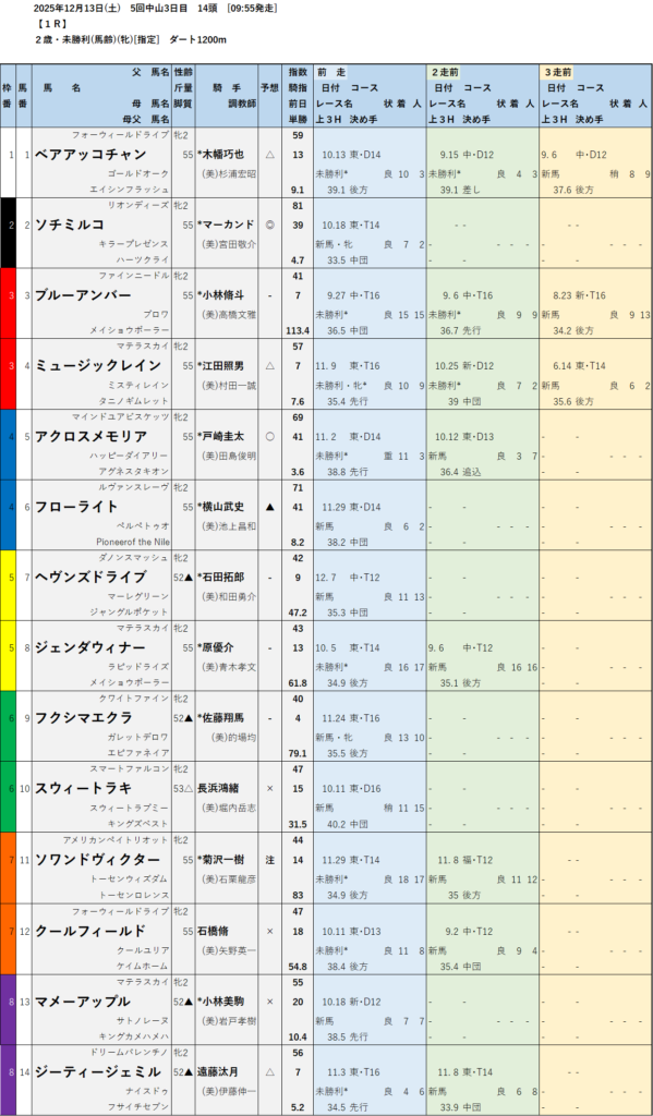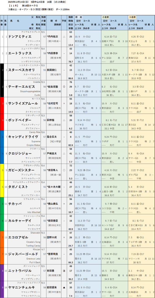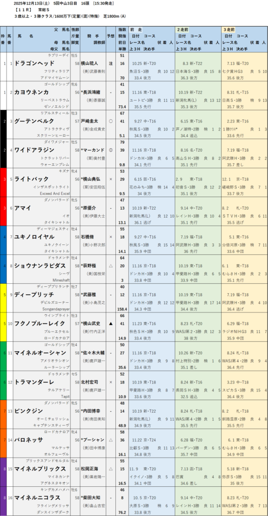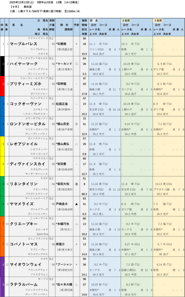 テッパン馬には届かないものの指数の高いレースも予想しています。