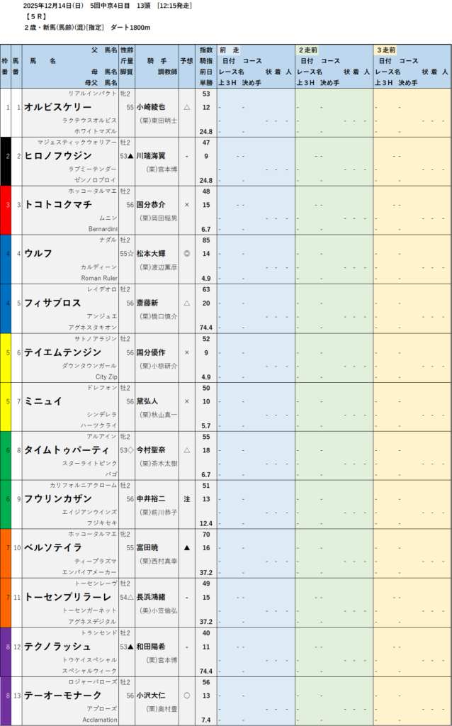 尚、以下の予想はテッパンレースの場合赤字で表記しています。