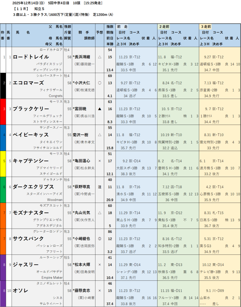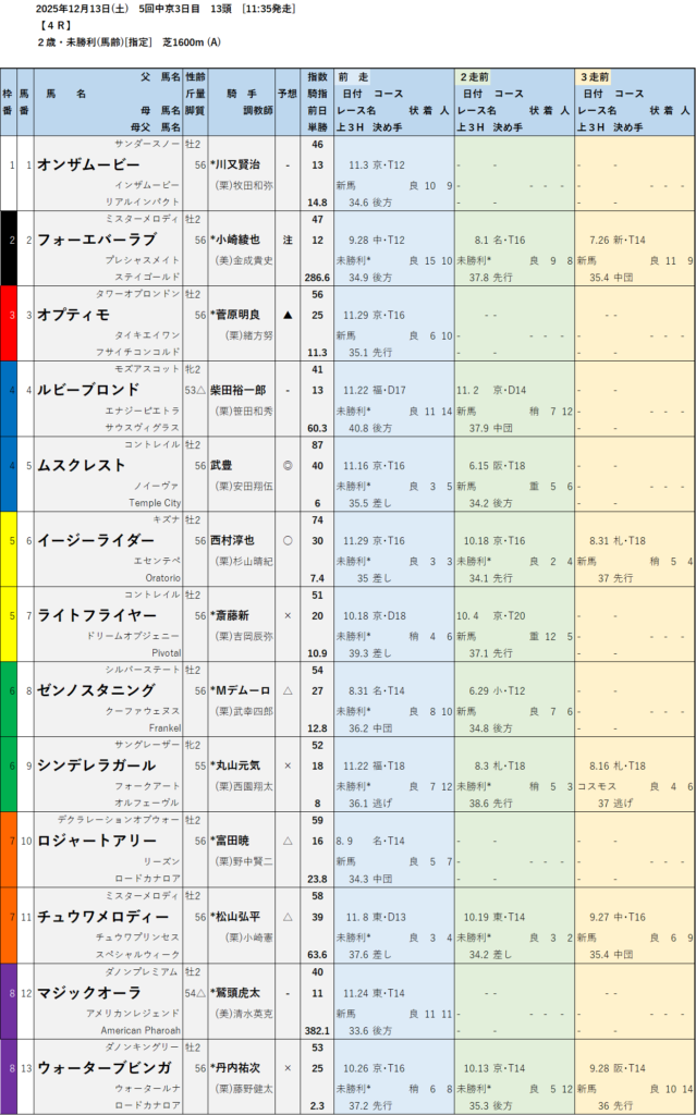 本日のテッパン馬は 4R・5R・10R・11R です。