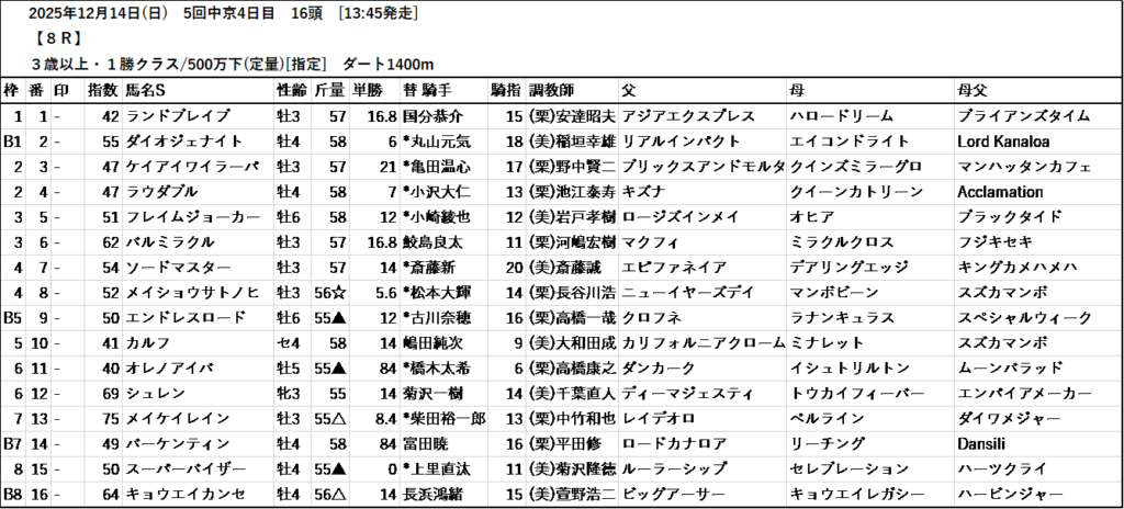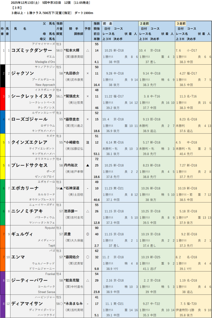 テッパン馬にはとどかないが指数が高いレースも予想しています。