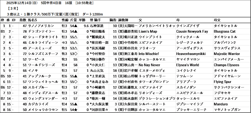 本日のテッパン馬は 1R・3R・4R・5R・7R です。
