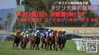 競馬予想 【無料中央競馬予想】2023年11月4日(土)5日(日)アルゼンチン共和国杯GⅡ・みやこステークスGⅢ・京王杯2歳ステークスGⅡ・ファンタジーステークスGⅢ 10月28日29日中央競馬無料予想 京都競馬場・東京競馬場・福島競馬場3場開催アルゼンチン共和国杯(GⅡ)京王杯2歳ステークス(GⅡ)みやこステークス(GⅢ)ファンタジーステークスGⅢ開催。テッパン馬・テッパンレース・特別レース等各種競馬予想を出馬表形式で指数・血統・坂路・前日オッズ掲載 2023.11.06 競馬予想